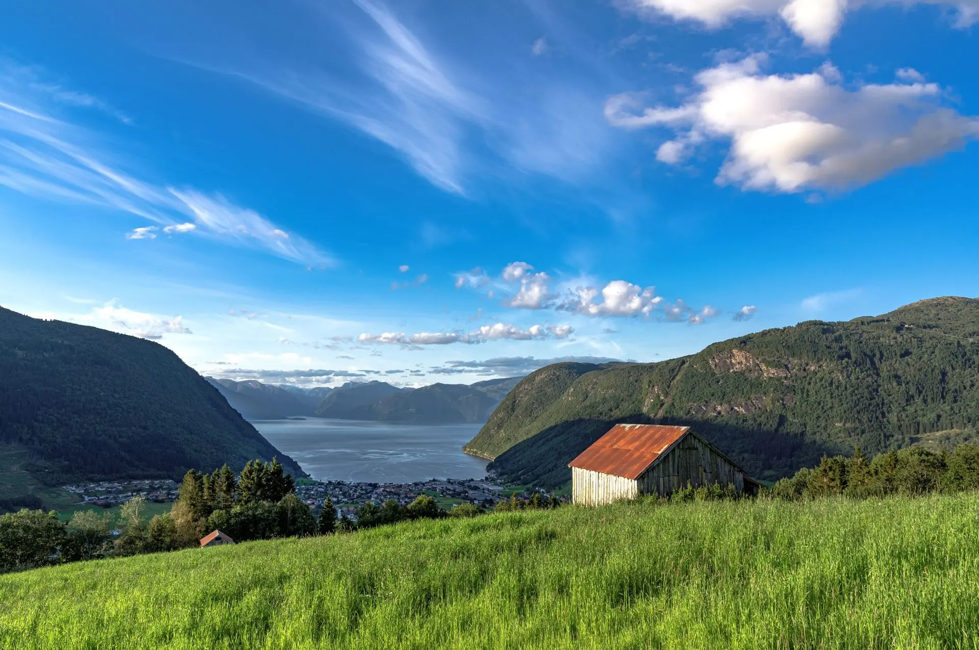 After a steep ascent, we stop for lunch and a foot break in Hovsåsen. From here, you have an incredible view over the village and out to the fjord. On the way back to the center, which is called Øyri, we pass through a rich agricultural landscape that was shaped after the last ice age.